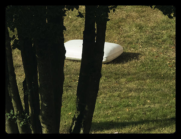 There was some guy last night, right where the pillow is. He was lurking about, then he stepped in a shadow, and that was all. I kept watching a while, but he never reappeared. Maybe he lay down and slept. But you wouldn’t sleep there, would you? There’s nothing to lie under, no awning, no canopy.